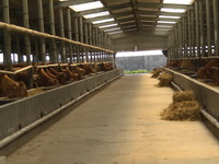 公司直屬優質肉牛育肥場,位于平度市田莊鎮宮東村南1公里處,始建于2009年3月,設計存欄3000頭,現存欄1000余頭,占地100多畝,現有建筑面,18600平方米。公司擁有一批具有養牛經驗的管理、技術、飼養人員。聘請了全國養牛方面的知名專家作為技術顧問。養牛場現有職工23人,具有初、中級以上技術等級和從事養牛5年以上的工人占70%以上,有管理和技術人員5人,其中畜牧獸醫專業中、高級以上職稱3人。本公司通過食品安全認證、質量體系、無公害認證,是國家地理標志保護產品。是肉牛定點屠宰單位。被評為“島城市民最喜愛的農產品品牌”、第一批“平度好食材”。本公司肉牛養殖場喂牛所用飼料全部采用自己配制的飼料,主要使用大豆、玉米、麩皮,大豆經炒料機炒熟后再分碎飼喂,無任何添加劑。公司有火鍋料理店6處,安排從業人員80多人。公司擁有年屠宰加工1萬頭肉牛的屠宰生產線,嚴格執行國家GB/T17238-2008鮮凍牛肉分割標準,并按伊斯蘭清真屠宰要求進行屠宰分割以及排酸嫩化處理。我公司生產的牛柳、西冷、肉眼、上腦、S腹肉等產品主要銷往上海,北京,南京,濟南,青島,煙臺等大中城市的四、五星級酒店,用作西餐、韓餐、日餐、中餐等深受用戶青睞。